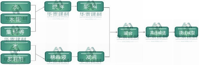 1、以水泥、細沙、粉煤灰、石粉等為原料的泡沫混凝土生產。
